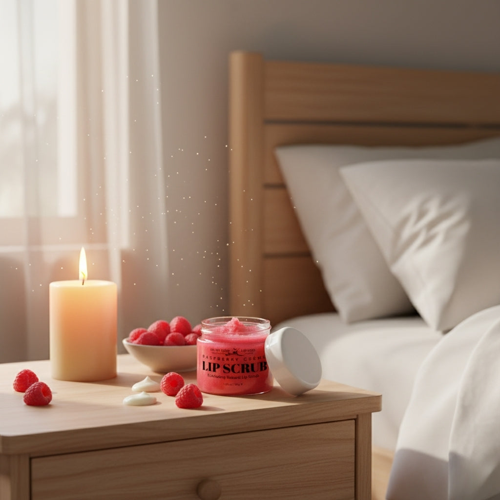 A wonderful combination of edible oils, Butters, sugar, and edible flavors; these lip scrubs are an enjoyable addition to your skincare. Soft and smooth on the lips, they exfoliate without damaging the delicate skin of the lips. Tangy Raspberry and sweet cream, make this lip scrub a delicious lip care you cannot ignore.